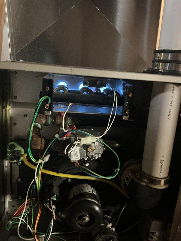 Diagnosed intermittent pilot light failure on residential furnace causing inconsistent heating. Performed voltage testing with multimeter at gas valve, confirming low millivolt reading of 16.4mV AC indicating thermocouple degradation. Replaced faulty thermocouple and verified proper pilot flame operation, restoring reliable heat production.