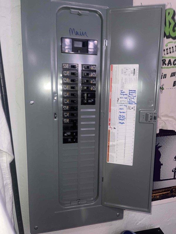 Responded to electrical code violation by properly labeling all circuits at the panelboard serving the new attic furnace installation. Documented the labeled panel with photographs to verify compliance with City of Detroit electrical regulations.