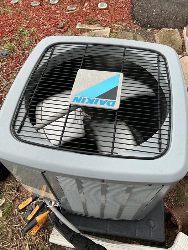 Completed comprehensive Gold AC inspection on 6-year-old Daikin condenser unit with air handler located in basement. Performed full system evaluation including visual inspection of outdoor condenser positioned on concrete pad, verified proper operation of all components, and documented equipment condition with photos. Unit found to be functioning properly with no immediate service needs identified.
