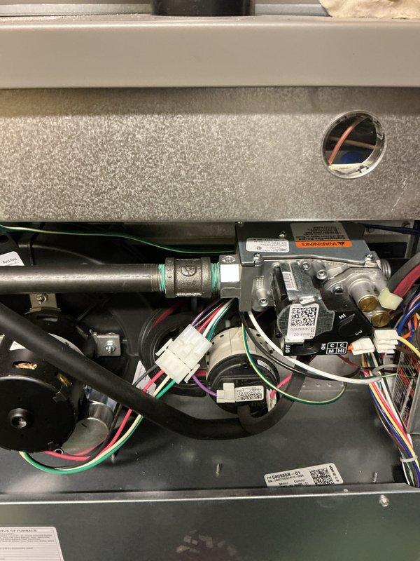Completed Gold Furnace Inspection on a 2-year-old forced air system located in basement. Inspected gas valve assembly, control board connections, and verified proper wiring configuration. All components functioning within normal parameters with no issues detected.