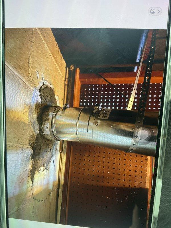 Completed warranty service for 5"x35' chimney liner installation that was postponed from initial system installation due to roof snow conditions. Successfully dropped liner through existing chimney structure and verified proper connection to HVAC system. Observed proper clearance where the vent pipe penetrates the wall structure and documented installation with photos.
