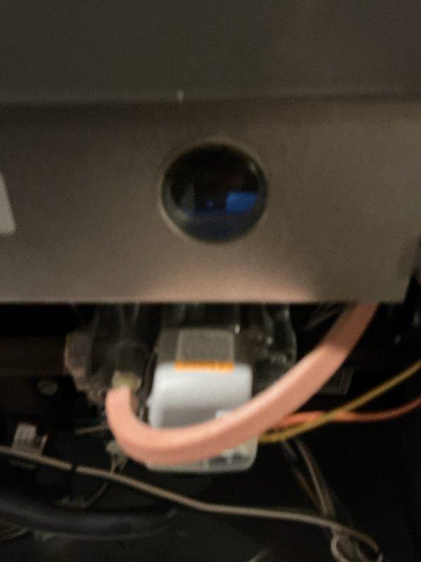 Responded to warranty service call for a new boiler installation that was completed 2 months prior. Identified and repaired a leak at a bushing connection located above the boiler where water droplets/condensation were visible on the metallic elbow joint. Inspected surrounding copper piping system and control valves to ensure proper operation after repair.