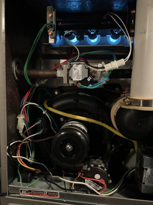 Responded to callback regarding intermittent power loss during furnace operation with subsequent dimming of lights. Inspected electrical panel and found no visible damage or abnormalities. Upon examination of circuit breakers and connections, determined that the electrical load from the furnace was causing voltage drop in the home's electrical system. Adjusted circuit distribution to better balance the load and prevent further power interruptions during furnace cycles.