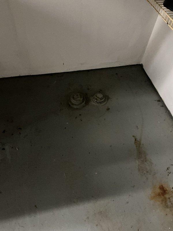 Responded to basement drain backup that had been occurring for three days. Successfully cleared main drain cleanout to resolve standing water and backup issue in basement floor drains. Documented pre-existing floor staining and drain conditions with photos for service records.