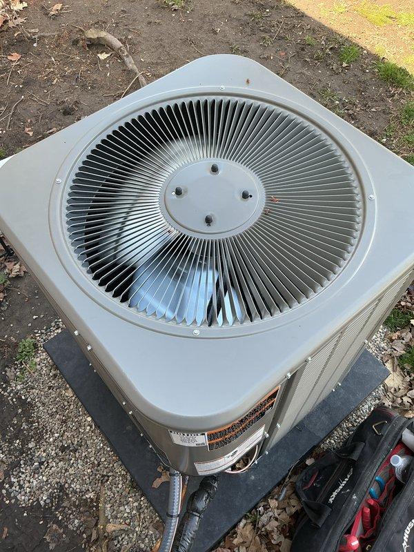 Performed AC system start-up on outdoor condenser unit and basement evaporator coil. Verified proper operation of compressor, condenser fan motor, and refrigerant circuit. System tested and confirmed operating within manufacturer specifications.