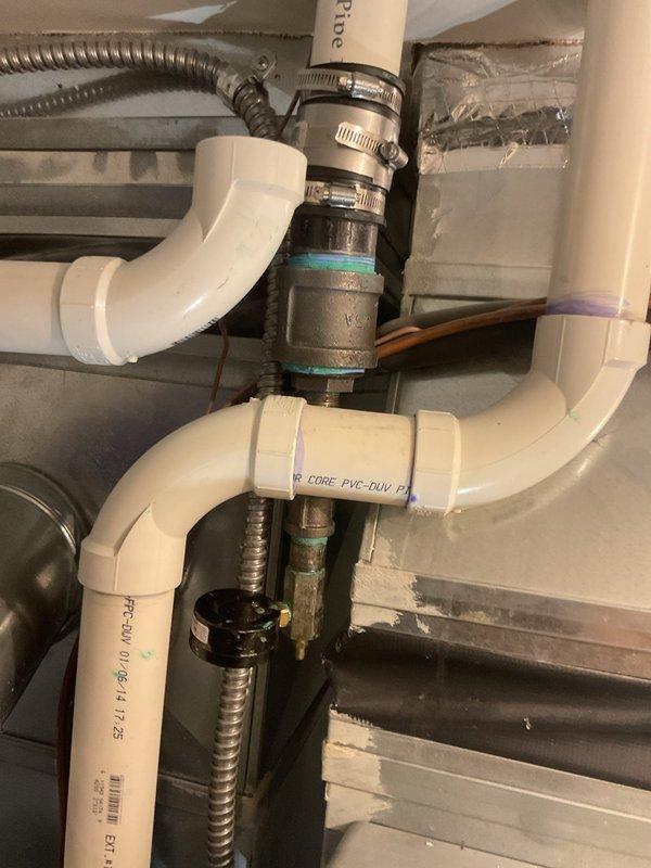 Confirmed diagnosis of clogged fresh air intake on 2nd floor furnace system with roof-terminating exhaust and intake. Visual inspection of the PVC-DWV piping system revealed proper connections with metal couplings and appropriate gaskets. Coordinated with service manager to schedule follow-up service for snaking the intake line.