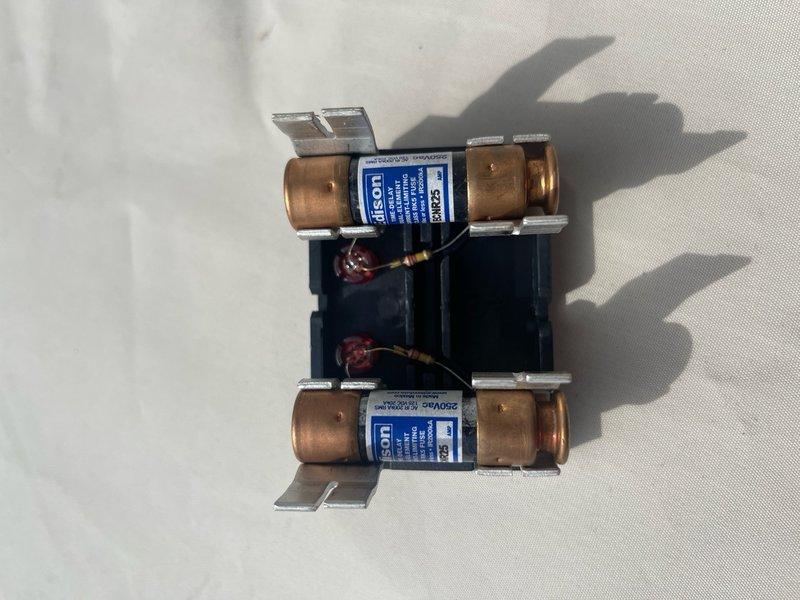 Responded to electrical code violation for air conditioning unit with improperly rated overcurrent protection. Replaced existing 30-amp fuses with correct 25-amp fuses per manufacturer specifications and local electrical code requirements, restoring the system to compliant operation.