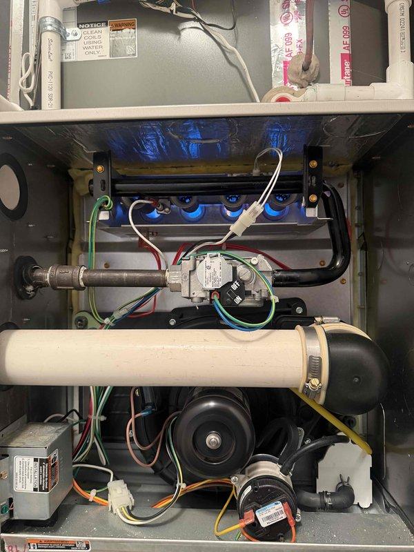 Completed Gold Furnace Inspection on a 9-year-old forced air heating system located in basement of multi-unit property. Performed comprehensive safety and operational assessment, verified proper burner ignition and flame characteristics with unit in active operation, inspected all internal components including gas valve assembly, blower motor, electrical connections, and condensate drainage system. All systems found operating within normal parameters with no deficiencies noted.