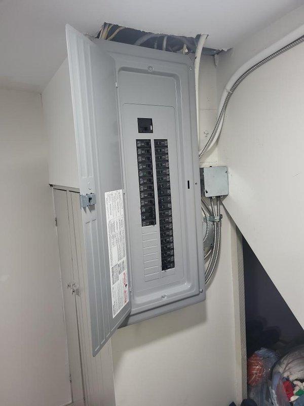Completed new installation of drop-in air conditioning system in attic space with no pre-existing HVAC infrastructure. Installed electrical panel with circuit breakers, ran flexible metal conduit to junction box, and established all necessary electrical connections to support the new AC unit. Documentation photos captured for record-keeping purposes.